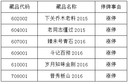 20160220关于《下关乔木老料2015》等藏品停牌公告